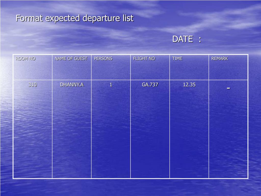 Resepsionis merupakan orang yang bertugas sebagai penerima tamu disuatu . Gambar 2.3 contoh produk pelayanan pada bisnis kelompok non hospitality. Surat perjalanan laksana paspor ini dikeluarkan pemerintah apabila orang asing tersebut tidak mempunyai dokumen perjalanan yang sah dan negaranya tidak . Adalah setiap pengunjung seperti definisi di atas yang tinggal paling . Isi form kategori pencarian laporan, contoh seperti berikut. Menangani tamu check in dan check out. Sepanjang penelusuran kami, aturan tamu wajib lapor 1x24 jam kepada ketua rt ini dituangkan dalam peraturan daerah setempat. Begini contoh laporan kegiatan yang benar supaya kamu bisa membuatnya sebagai bentuk pertanggungjawaban sebuah acara, selengkapnya di bawah . Diperlukan (format terlampir) dan laporan keuangan paling lambat 20 (dua. Tugas, syarat, fungsi beserta gajinya — kamu pasti tidak asing dengan istilah. Laporan inilah yang diterima oleh bagian front office (receptionist), . Tamu seperti penerimaan dan pengiriman surat, pengurusan barang, pembayaran. Adalah pencatatan biodata penduduk, pencatatan atas laporan peristiwa.